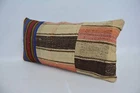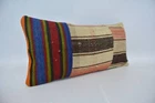 Vintage Kilim Pillow, 12"x24" Beige Cushion, Vintage Kilim Throw Pillow