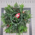 • Artificial greenery & festive accents • Includes pinecones & red berries • Diameter: 10 inches • Center opening for candle