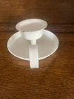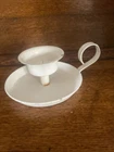 This vintage LENOX Candle Holder features a French Country style, with a solid round design in white metal. It is suitable for all occasions and both teens and adults can appreciate its elegant design. The candle holder includes a finger loop for easy carrying and has a 1.5" diameter, perfect for chamber drip candles. Care for this piece is easy, making it a convenient and stylish addition to any decor. As is as shown -usage. Ask any needed questions:)
