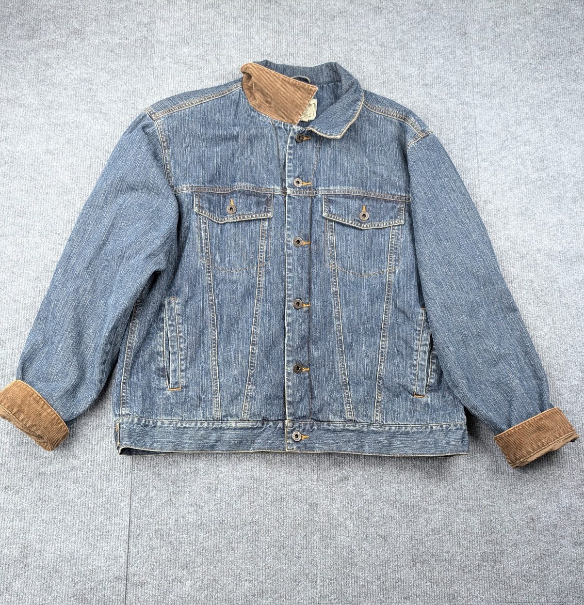 Brand: L.L. Bean Type: Jacket Gender: Mens Size: Large (L) Regular Color: Blue Outer Shell Material: Denim (Cotton) Lining Material: Cotton / Nylon Style: Trucker Jacket Closure: Button Collar Style: Corduroy Collar Fit: Regular Season: Fall, Winter, Spring Country/Region of Manufacture: Thailand Condition: Pre-owned