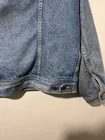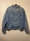 This vintage Lee Storm Rider denim jacket is a must-have for any fashion-forward man. The corduroy collar and button accents give it a Western-inspired look, while the polyester lining ensures warmth and comfort. The jacket is size L and features a trucker style, making it perfect for any casual occasion. The blue denim material and USA-themed logo make this jacket a unique addition to any wardrobe. It's perfect for those who love 80s fashion and want to stand out from the crowd. Don't miss out on this one-of-a-kind piece, made in the United States by Lee.