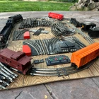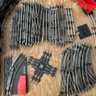 Does not come with the cat. Everything is being sold AS IS. Some components work, and others don't. All 3 transformers turn on and can send power to the tracks. The direction reverse on them sometimes. The power cords are in rough shape and cracked/exposed in multiple places. The train cars all appear to be in decent shape, but may be missing components. Some of the tracks are bent, but some are perfectly useable. None of the switches are tested. Both locomotives go, but could use some cleaning, and don't have a smooth start. Unsure if this is because of track imperfections, transformer issues, or the locomotives themselves. Please reach out with any questions prior to purchase. Comes with all train parts shown in photos. Again this if for parts although many things are still functional. Sold AS IS - No returns.