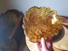 Vintage MCM Fall Decor Indiana Amber Glass Loganberry Acorn Candy Bowl/Dish. Condition is Used. Shipped with USPS Ground Advantage.
