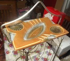 Vintage MCM Magazine rack with ashtray 26" tall from floor to tip of handle Ashtray is 8" x 12"-so stand is a little wider than that Very good vintage condition with normal wear on stand and No chips or cracks on ashtray