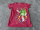 This vintage M&M's night sleep shirt for women features a red color with a graphic print of classic M&M's chocolate candy. Made from 100% cotton knit fabric, this lightweight sleepshirt has a round neck, short sleeves, and a pullover closure. With a one-size fit suitable for sizes small to large, this nostalgic piece is perfect for fans of M&M's looking for a comfortable and stylish sleepwear option with a touch of 90s nostalgia. Perfect for summer, fall, and spring seasons, this machine-washable sleepshirt is a fun addition to any sleepwear collection.