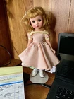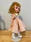14" tall in great condition Doll is clean; no odors Body in great condition; the only scrapes are at the top of the neck. *NOTE: Scrape on right elbow The wig is original saran in fantastic condition. Hair in original style Her dress is tagged Dress is powder pink taffeta with lime green under skirt. Doll is not marked but you cannot mistake the Maggie face Hard plastic She has been restrung Shoes, socks and panties are new She has sleepy glass eyes Eye lashes are in tact; all fingers accounted for *Face paint is vivid She is an adorable doll Look close; ask questions More vintage dolls in my shop Thank you