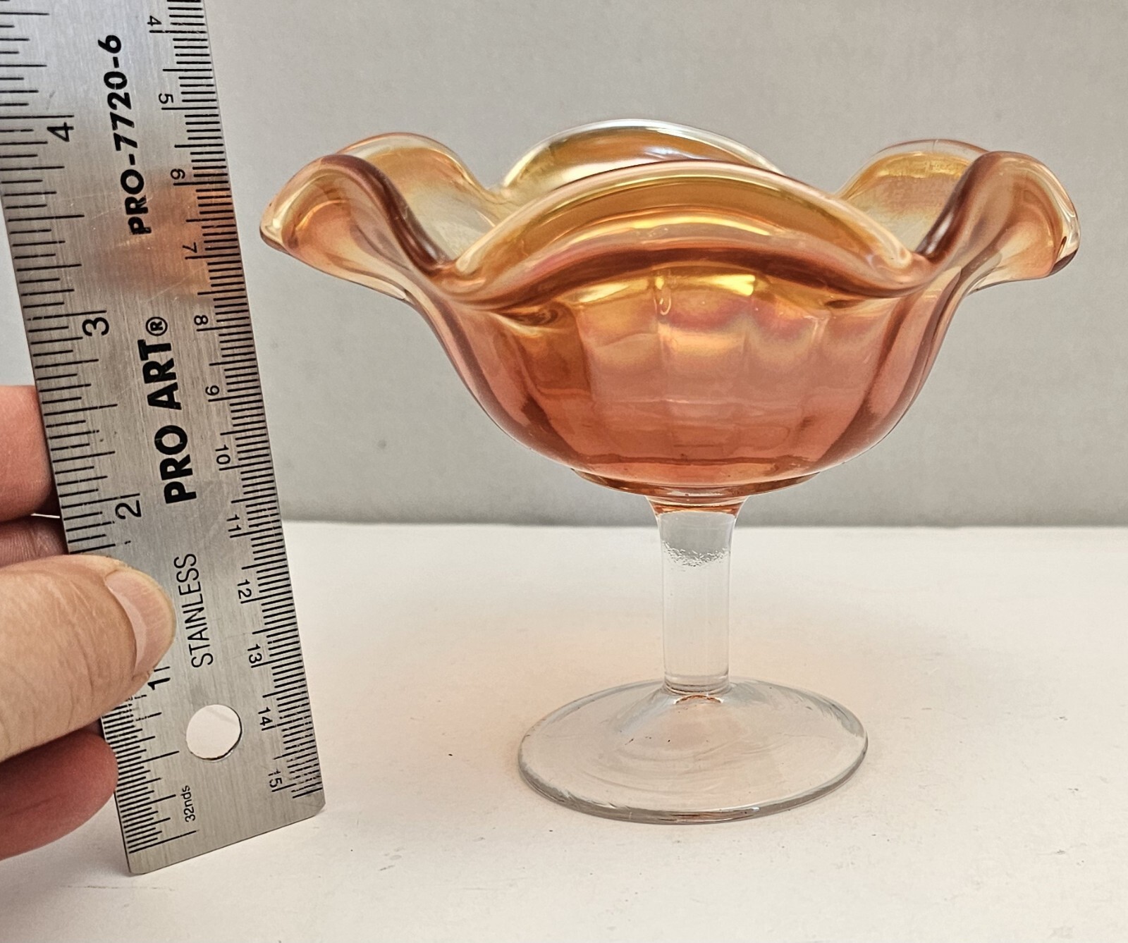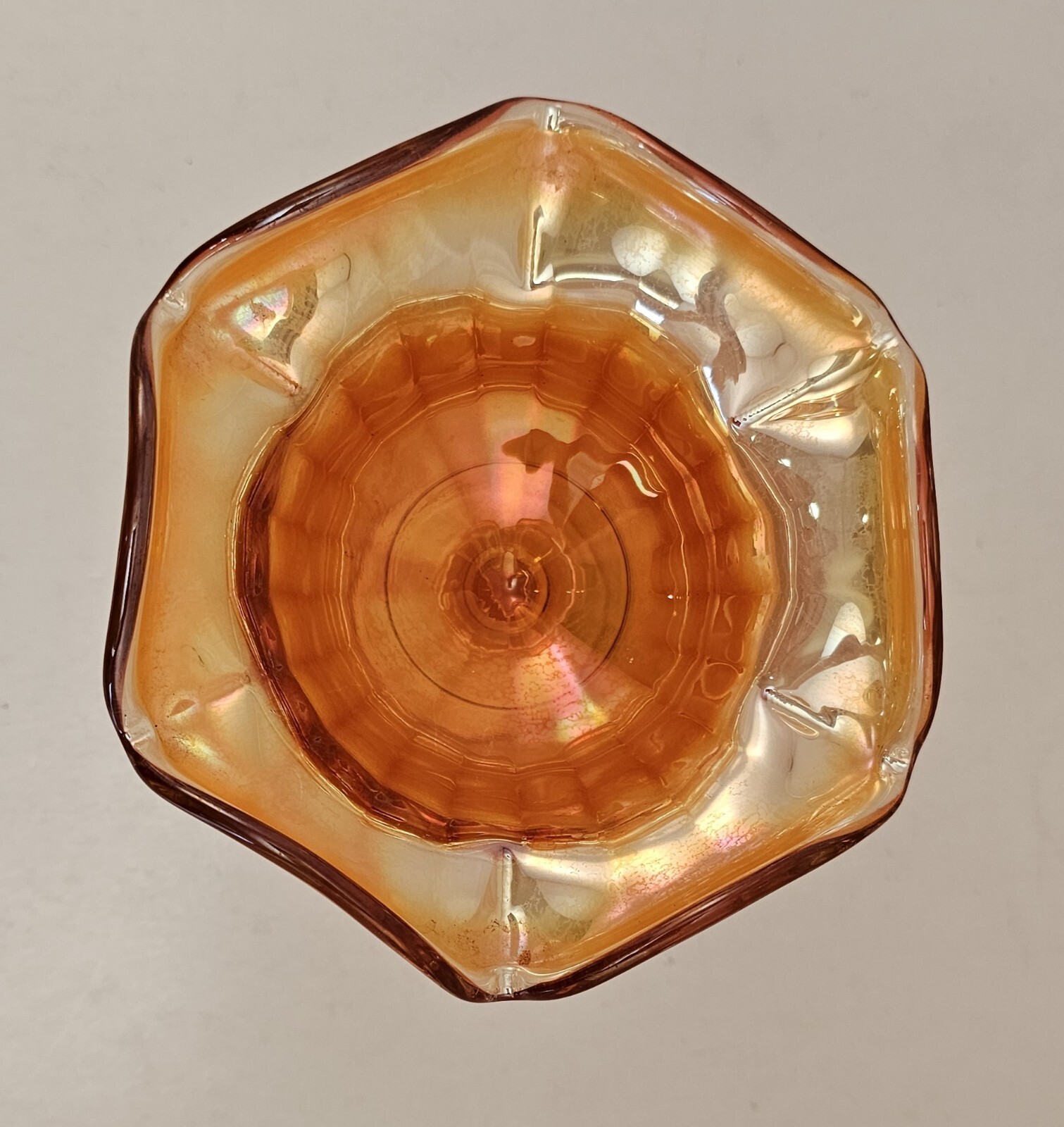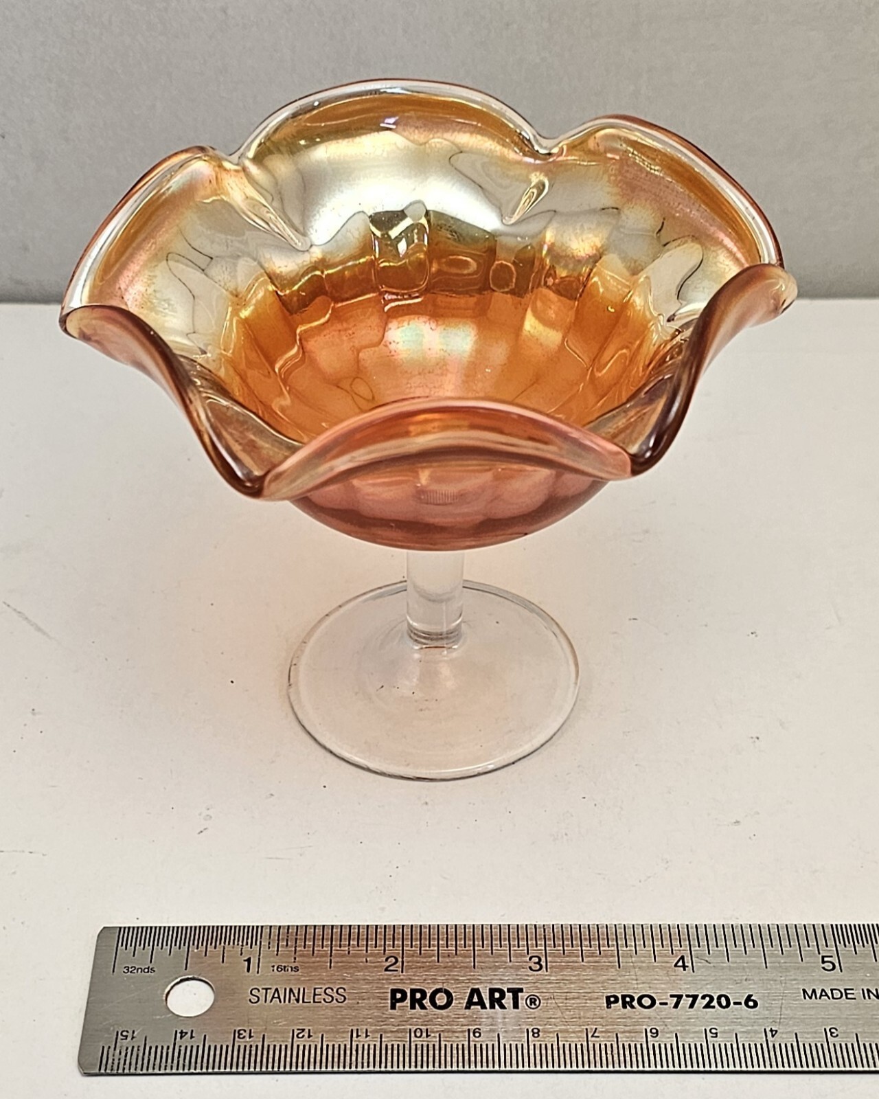 Vintage Carnival Glass Compote Marigold *Rays* Pattern Ruffled Edge. Condition is Pre-owned and in very good condition. Please see all photos for item details. Shipping USPS.