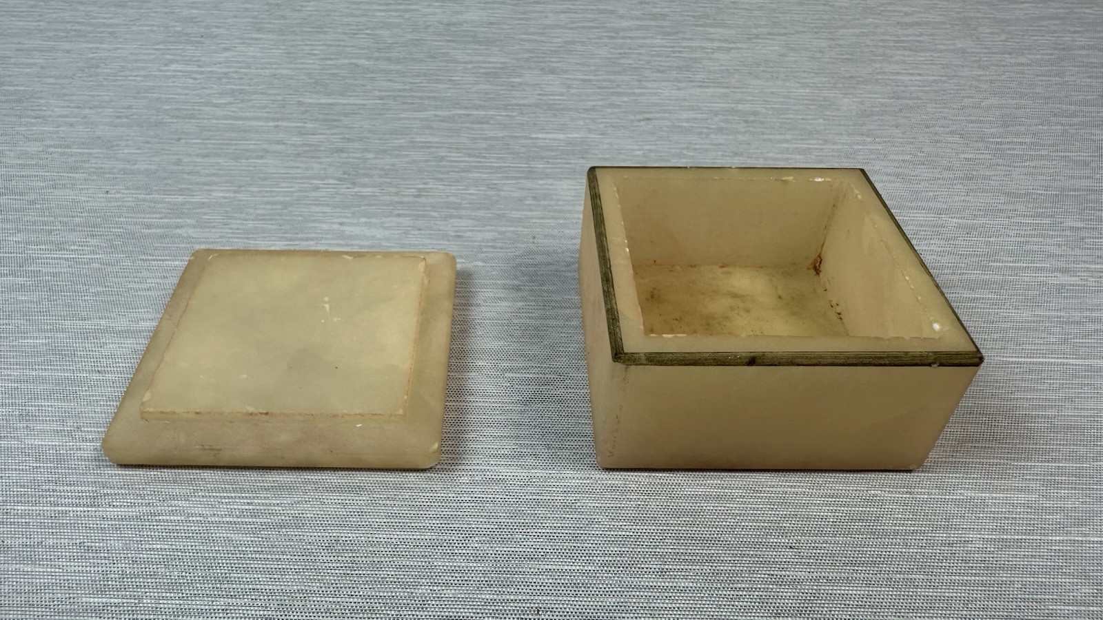 Vintage Marshall Fields Alabaster Hand Painted Jewelry Trinket Box Made in Italy