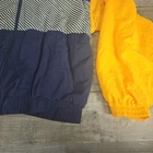 This vintage Reebok windbreaker jacket for men features a unique purple, yellow, and blue striped pattern, perfect for adding a pop of color to any outfit. The jacket is made of durable nylon material and is designed in a comfortable, regular fit size for men. With its classic windbreaker style, this jacket is ideal for outdoor activities and casual wear. The jacket is pre-owned but in great condition, with no noticeable flaws or defects. Add this stylish and functional jacket to your collection today.