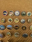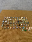 This Vintage Metal Pin Badges Bundle features 69 enamel badges from the 80s and 90s, perfect for collectors of vintage items. Each badge is a unique piece of nostalgia, showcasing a variety of designs and styles from that era. The bundle offers a diverse selection of pin badges, making it a must-have for anyone looking to add a touch of retro charm to their collection. Please see all images for condition commensurate with age