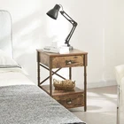 Features Retro design: Whether it is the color of wood grain or the texture of metal, it shows that this is a beautiful retro bedside table. The bronzed metal frame complements the vintage look and adds to the allure of the entire bedside table. Sturdy and Durable: Sturdy metal round legs provide strong support and ensure stability. Matt chipboard ensures the durability of the bedside table. Ample Storage Space: With two drawers and a roomy shelf, this nightstand provides you with plenty of storage space. You can put lamps, laptops, cell phones on the desk and put personal items or other things you want in drawers. Multifunctional use: The result of industrial design is a unique display of exquisite charm, whether you want to match the sofa or the bedroom, it is a good choice. Easy to assemble: We provide all accessories and instructions. So you just need to follow the instructions step by step. If you have any questions, please contact us in time. Specifications Color: Brown Material: Metal, Wood Size: 15.7" L x 15.7" W x 23.7" H Package Includes: 1 x Nightstand 1x I nstruction manual 1x A ccessory Note: Please allow ±1/0.5'' error due to manual measurement. When viewing the color of the product on your monitor, it may differ from the actual color of the item.