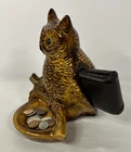 This vintage midcentury modern style Owl on Branch Porcelain Dresser Valet with Wallet Holder and Trinket Tray is a very unique piece. It is signed by the artist (Kenna Linda?) and marked Calif. U.S.A. 9046 on the bottom. This piece is about 8” inches tall, 7” inches wide and about 6” inches deep. This timeless unique piece is the perfect accessory to hold your wallet and whatever else you may have stored in your pockets during the day. Vintage MCM California Pottery Owl on Branch Dresser Valet Trinket Tray Signed is in excellent vintage pre-owned condition, with NO chips, cracks or repairs. However, it does have some paint loss. Please review all pictures for proper assessment of its excellent vintage pre-owned condition.