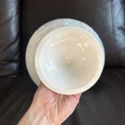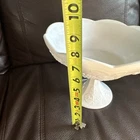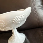 This beautiful milk glass pedestal fruit bowl is perfect for any occasion. The vintage pattern and round shape make it a unique addition to your collection. Measuring at 10 inches by 8 inches, it is the perfect size for serving fruits, desserts, and salads. Crafted from high-quality ceramic, this fruit bowl has a gray color that complements any decor. The production style is art glass, and the production technique is white glass. Its production period is from 1960-1969. This handmade bowl is a part of an unknown product line and country/region of manufacture. It is a must-have for any collector or enthusiast of decorative cookware, dinnerware, and serveware. Beautiful used condition!!