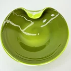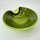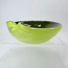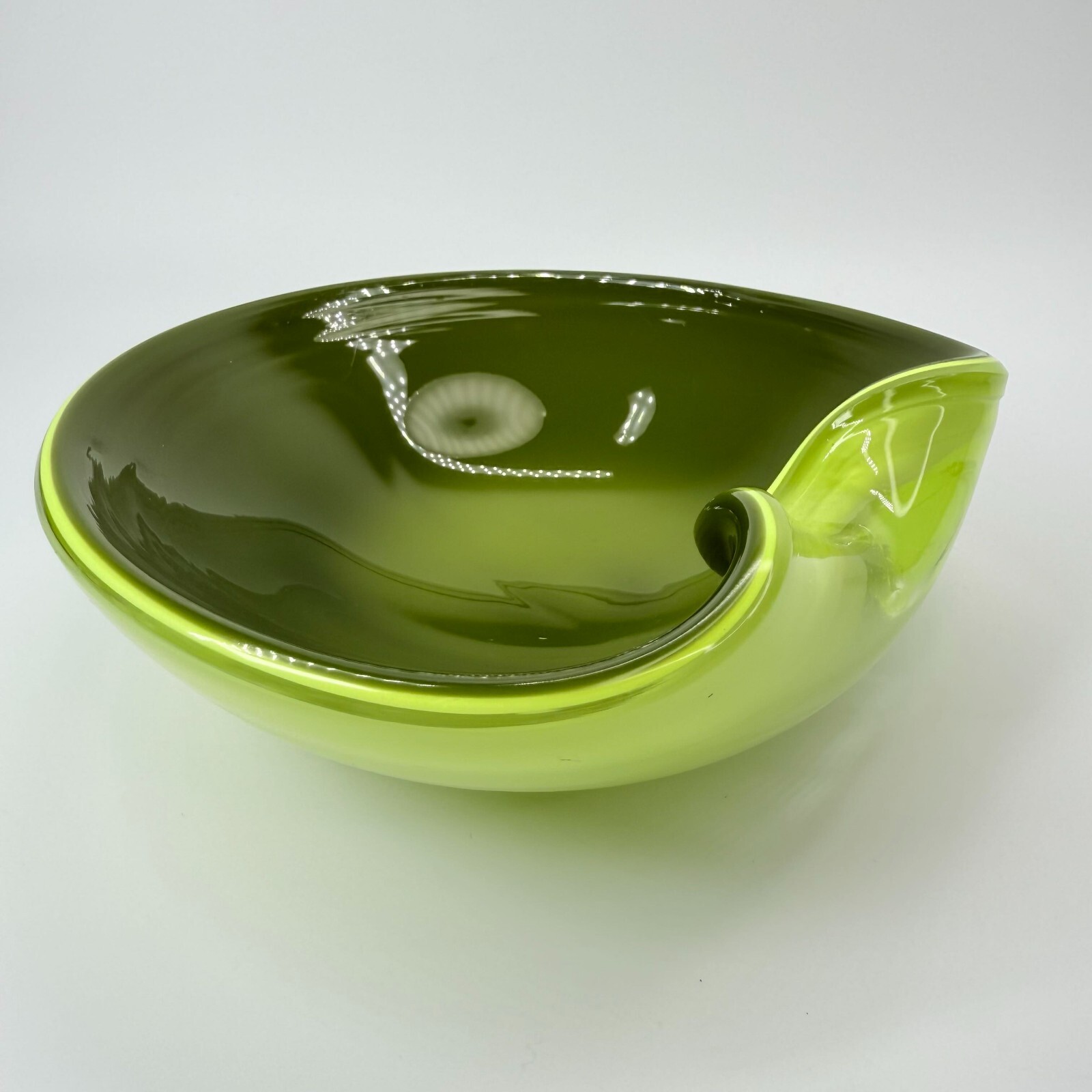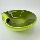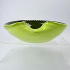 Vintage Murano Candy Dish Center Bowl Green Folded Edge Decorative Glass Glossy