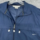 Vintage Nike Windbreaker Mens L Navy Blue Essentials Track Jacket Swishy Logo In good condition. Please see photos for measurements.