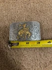 This vintage Nocona belt buckle is a must-have for any collector of vintage accessories. With its intricate design and high-quality craftsmanship, it is sure to catch the eye of any admirer. The buckle is made by Nocona, a well-known brand in the belt buckle industry, and is in excellent shape, ready to be added to your collection today. Size in shown in pictures. The buckle features a unique design that is sure to impress, making it the perfect addition to any outfit. It is made from high-quality materials and is built to last, ensuring that it will be a treasured item for many years to come. Don't miss your chance to own this one-of-a-kind vintage Nocona belt buckle.