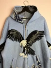 This vintage American Vintage Supreme Eagle Pile Wool Full Zip Fleece Jacket is a must-have for any fashion-forward man. The jacket is made of high-quality wool and features a full zip design, making it perfect for layering during the colder months. The blue color and bomber jacket style give it a designer, 90s vibe that is sure to turn heads. The jacket is XL in size and has a regular fit. The lining material is made of polyester, ensuring comfort and warmth for the wearer. With its unique features and fabric type, this jacket is perfect for anyone looking to make a statement with their clothing choices. Size XL Look at the photos! Fast Shipping! Chest 68 cm Length 72 cm Shoulders 75 cm
