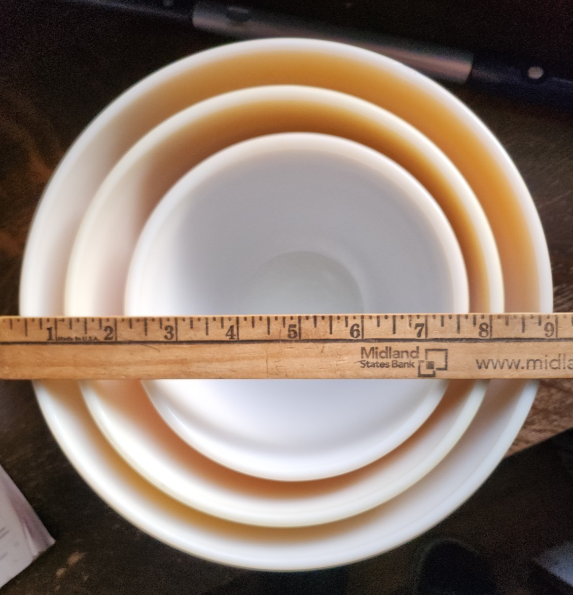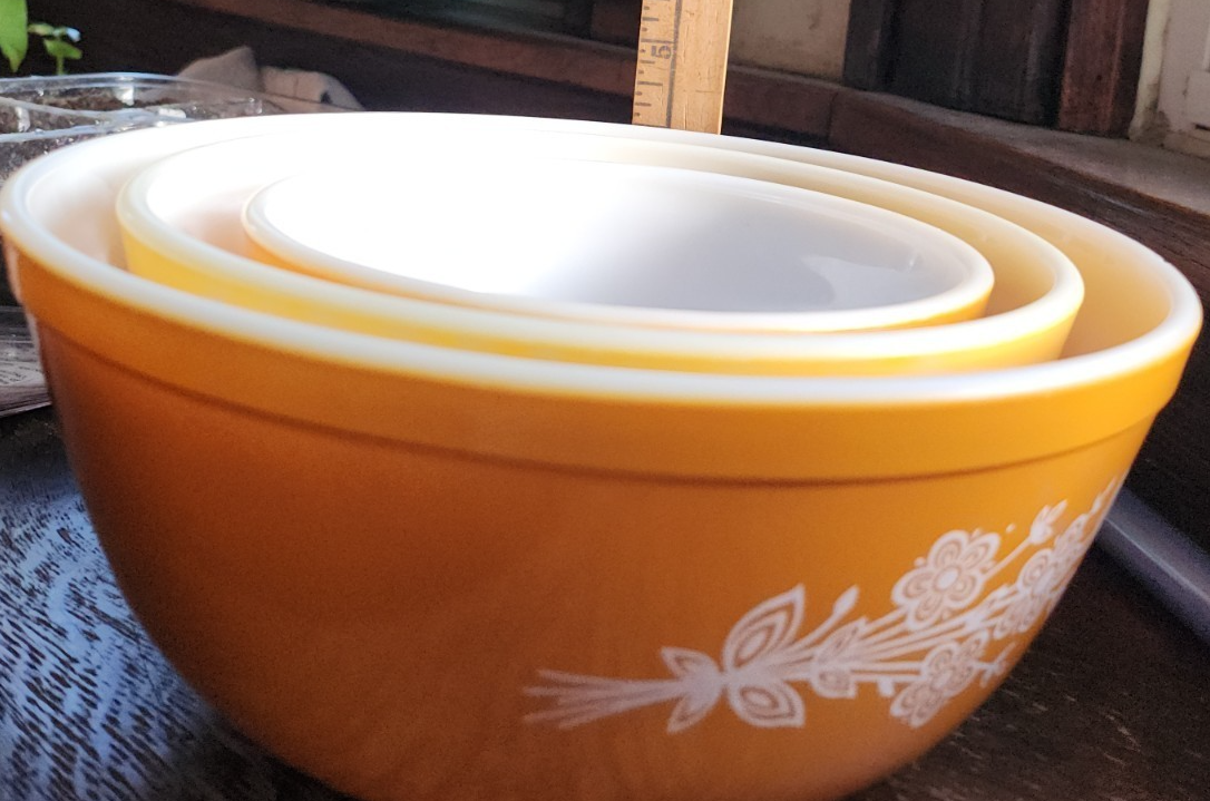 Vintage PYREX Set of 3 Milk Glass Nesting Mixing Bowls - Butterfly Gold 2 Bowl numbers 401, 402, 403 Gently-used condition, some outer small finish blips, a scuff, and a small chip on the lip of the larger bowl....See photos and ask if you have any questions. Internet sales tax, if any, is automatically added by eBay. We ship within two business days after payment via to the address generated during your eBay check out/payment. Shipping via the U.S. Postal Service in the Continental United States only. Contact me with any questions prior to purchase. We cannot change the address after purchase and are not responsible for shipments to incorrect addresses, payments from unconfirmed, unverified, or non-registered PayPal purchasers. Tracking via USPS provided, and quoted delivery times are estimates only. Once tracking in transit via the U.S. Postal Service, we are not responsible for weather conditions from Illinois to your location, USPS postal delays, packages delivered to unattended or unsecured locations, mishandling during transit, not deliverable as addressed, forwarded, rerouted, unclaimed, lost, or damaged parcels.