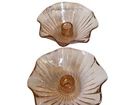 Set of 4 Vintage Pink Depression Glass Candlestick Holders – Fluted Fan Shell Design Add a touch of vintage charm to your space with this beautiful set of 4 pink Depression glass candlestick holders. Featuring a scalloped fan or shell-like shape with a ribbed design and central taper candle holder, these delicate pieces are perfect for Art Deco lovers or Depression glass collectors. Details: Quantity: 4 candlestick holders Color: Soft pink Material: Depression glass Style: Fluted fan/shell with ribbed detailing Condition: Excellent vintage condition – no chips or cracks