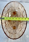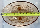 The Vintage Indiana Glass Pink Depression Large Oval Footed Fruit Bowl is a stunning piece of mid-century modern decor. Made in America in the late 20th century, this press-molded glass bowl features an etched grape pattern, adding a touch of vintage charm to any occasion. With a glossy finish and a delicate pink color, this decorative fruit bowl is not only functional but also a beautiful addition to any home. Hand wash only to preserve its original beauty.