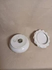 This vintage porcelain trinket jewelry box with a lid is a small round box suitable for furniture decor. It features a multicolor floral pattern and is made of porcelain, with a theme of art and romance. Perfect for any room, this original piece from the late 20th century is part of the Keepsake Boxes collection and comes boxed for gifting or storage. Ideal for adults who appreciate unique and nostalgic decor items, this jewelry box with a weight of 2 lb is a charming addition to any home.