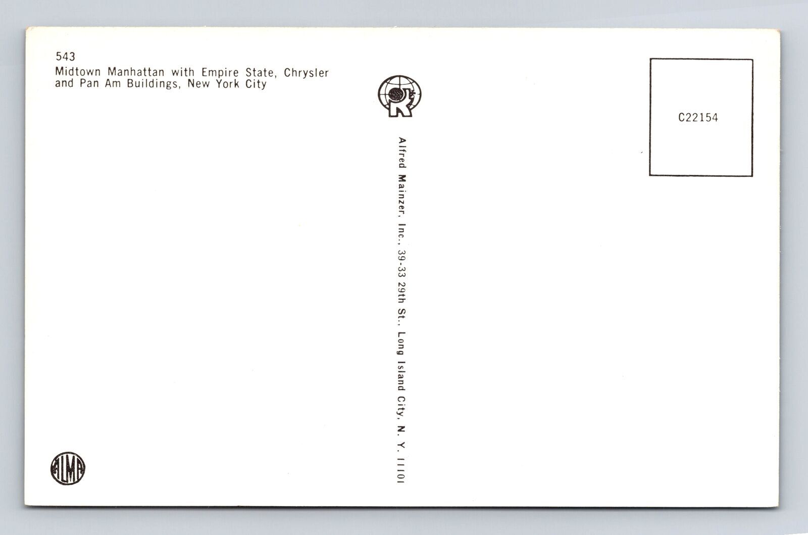 Vintage Postcard of NYC Midtown Manhattan Empire State Chrysler Building