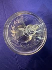 Pretty floral etched candy dish and lid. Dimensions Height - Bowl: 2 1/2 inches Bowl with lid: 6 inches Weight- 1 lb, 3 oz Diameter - 5 inches Very good condition with no discernible cracks or chips on bowl. Lid has a scratch. Etching is in excellent condition. Please refer to pictures. Sold as is.