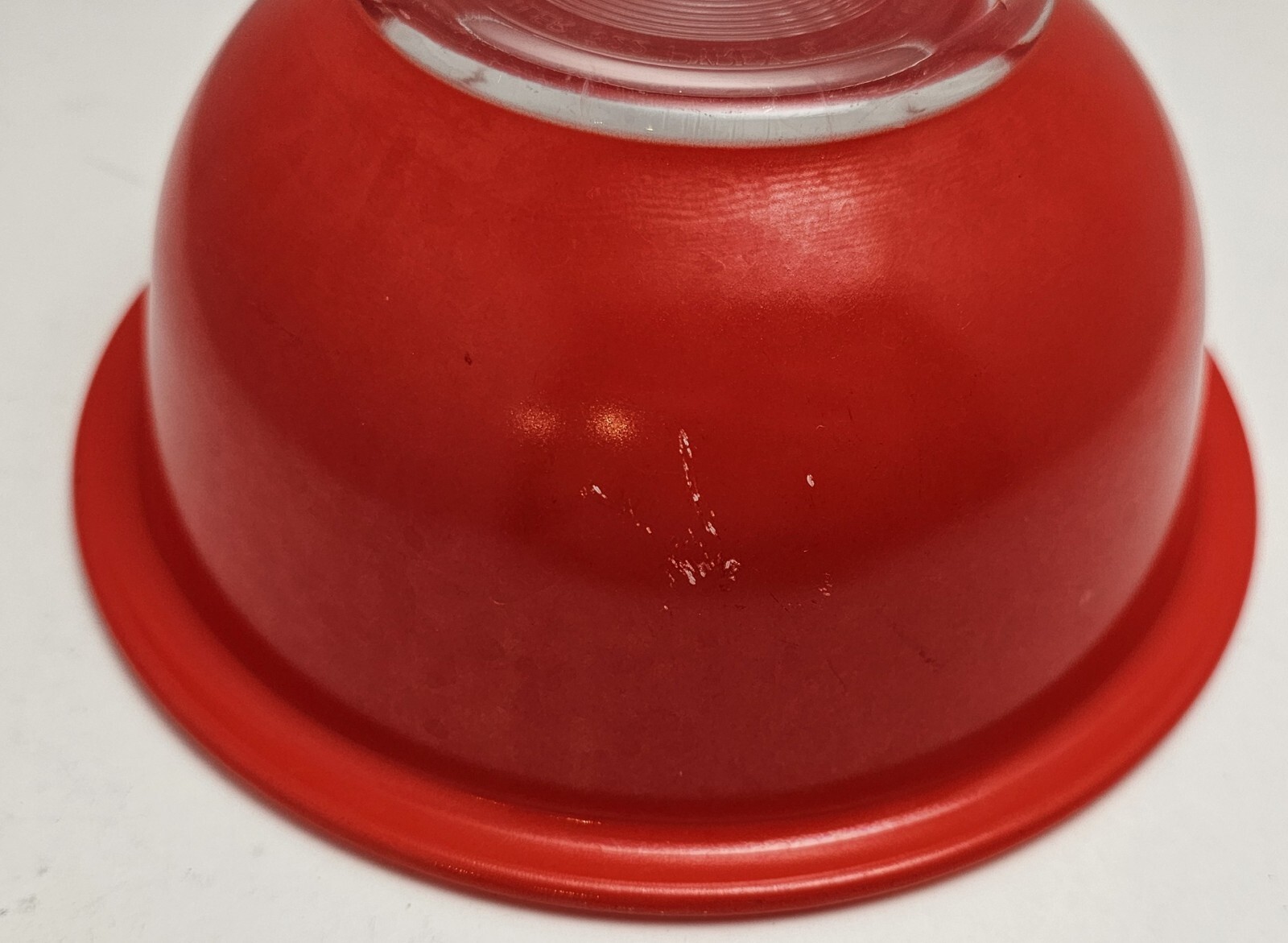 Vintage PYREX #322 Red Clear Bottom Mixing Bowl. Condition is Pre-owned. There is a few areas where the paint is worn (see photo). Please see all photos. Shipping USPS.