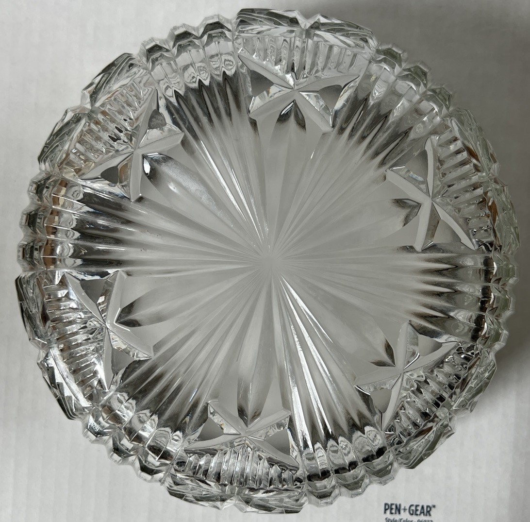 serving salads, desserts, or simply as a decorative centerpiece, this stunning bowl adds timeless elegance to any occasion. The silver-plated rim and intricate cut glass details catch the light beautifully, making it a conversation starter. A must-have for vintage lovers!