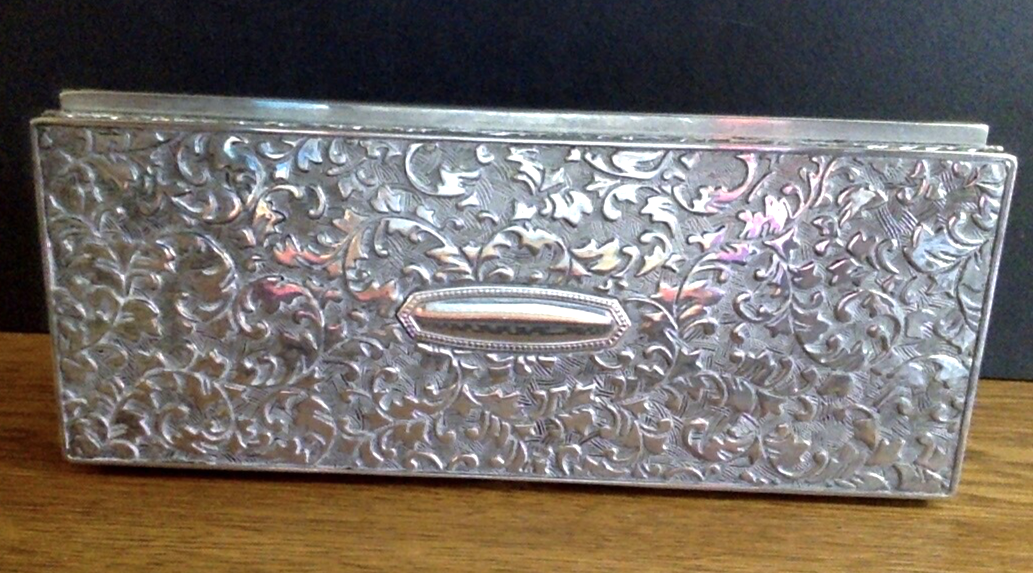 Excellent vintage condition (circa 1990s) lid opens and closes smoothly, Beautiful red velvet interior, ornate silver plated exterior. Made by Godinger, this box has a plaque area in the center of the lid surface decoration that may be engraved with your initials. Ships via UPS ground, carefully packed. Thanks for looking, and enjoy!