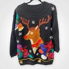 Vintage Rudolph Christmas Sweater - Black Holiday Knit Sweater- Medium This Vintage Rudolph Christmas Sweater by Spice of Life (possibly 80s or 90s) is a holiday must-have! This festive sweater features Rudolph the Red-Nosed Reindeer with a real bell around his neck. The design is adorned with poinsettias, bells, snowflakes, and gem accents for extra sparkle. Key Features: Brand: Spice of Life Material: 44% Ramie, 34% Acrylic, 22% Cotton Size: Medium (Fits true to size; can also work as a dress for petite frames) Color: Black with multicolor festive design Design Details: Real bell, intricate knit pattern, gem accents, poinsettias, snowflakes Condition: Pre-owned, good vintage condition Measurements: Bust: Approx. 19" Length: Approx. 25" Sleeve Length: Approx. 23" Perfect For: Holiday parties, festive gatherings, or even as a statement holiday dress paired with boots! — Vintage Rudolph Sweater, 80s Holiday Knitwear, Christmas Sweater Medium, Festive Reindeer Sweater, Poinsettia Snowflake Gem Sweater, Ugly Christmas Sweater Chic