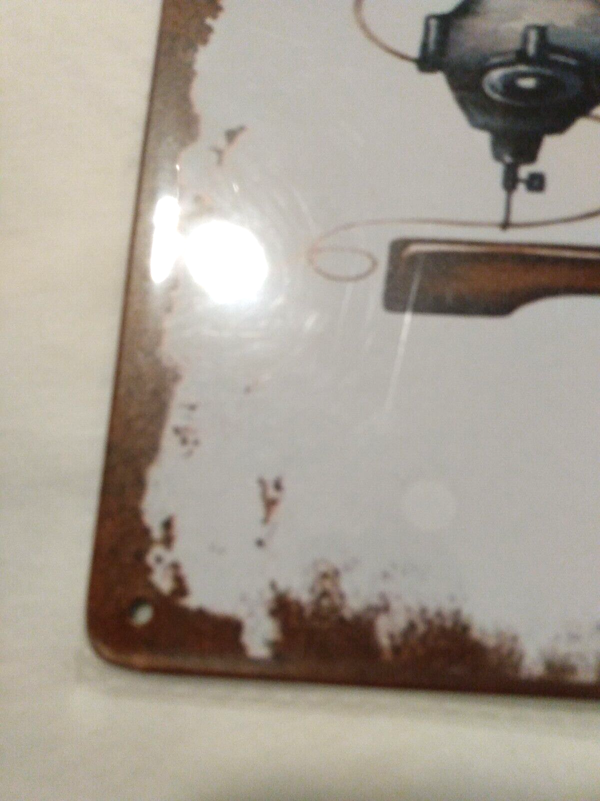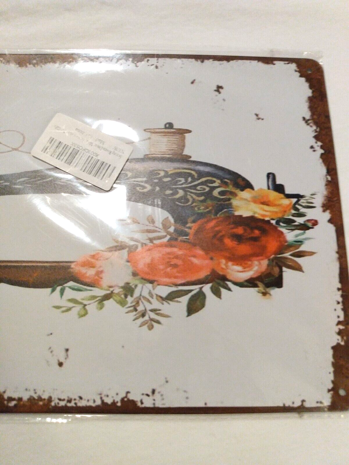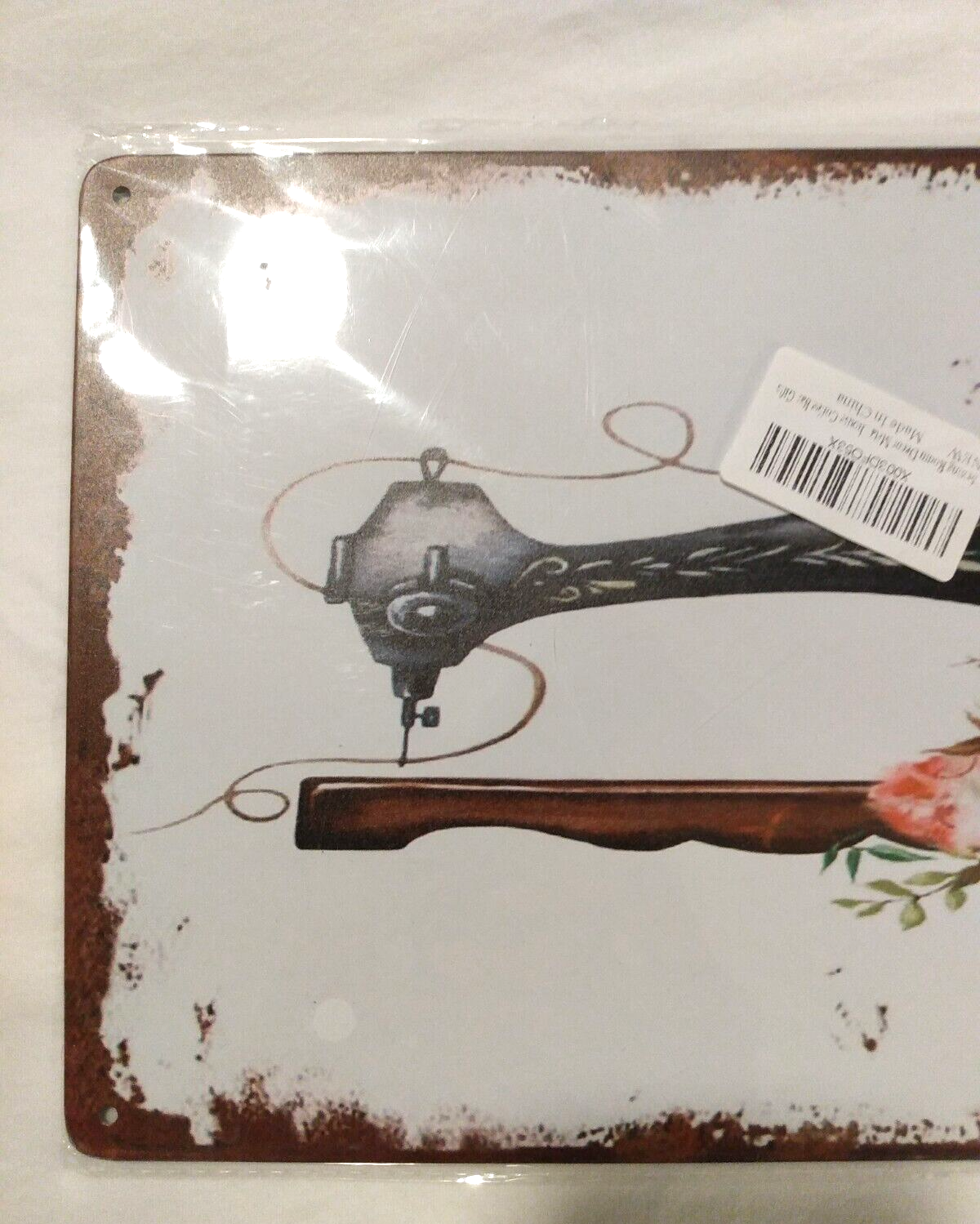 Sewing Machine Room Decor Metal Tin Sign Poster 11 3/4" X 7 3/4" FLAW New with defects. Has some dings/bends in the metal. Please see ALL photos. This decorative item would look great in any sewing or craft room. Measures approximately 11 3/4 x 7 3/4" 4 hanging holes Please feel free to contact me with any questions or concerns. Thank you for looking!