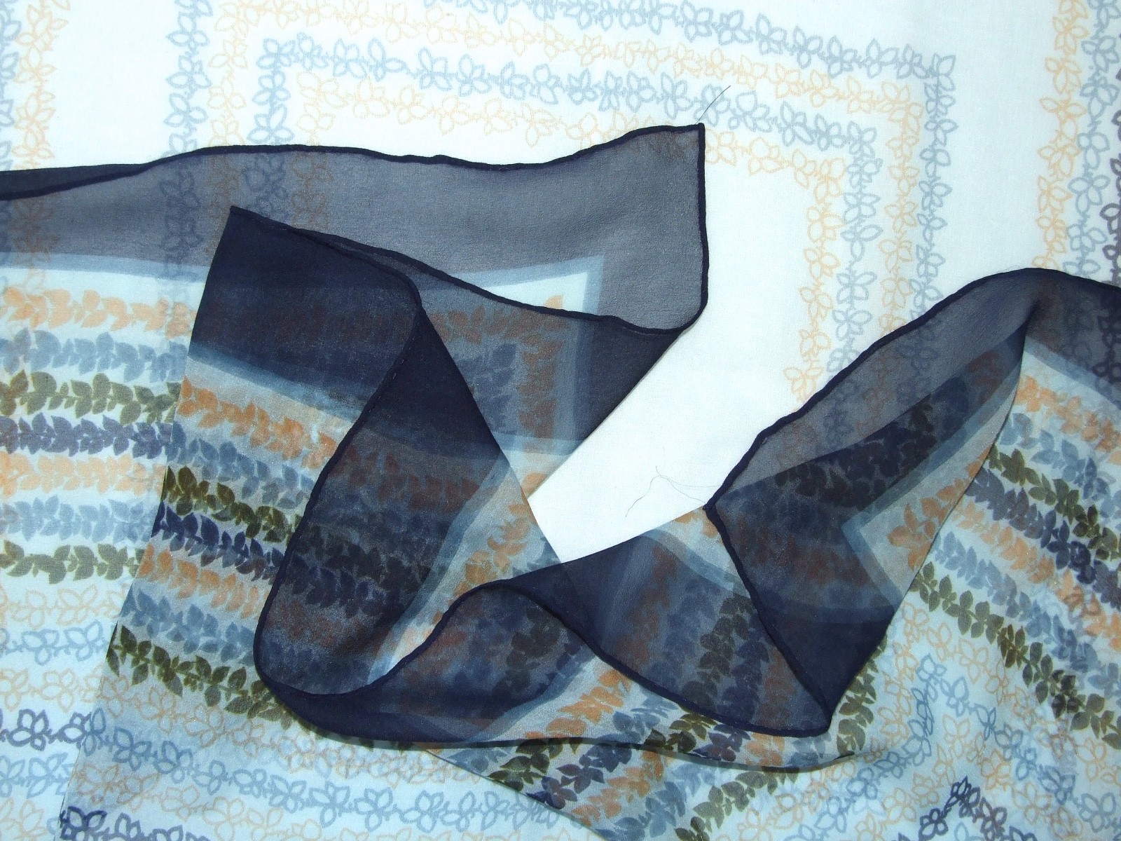 Delicate FLORAL Orange Blue Green Hand Rolled Chiffon Silk 30" Fashion Scarf Delicate FLORAL Orange Blue Green Hand Rolled Chiffon Silk 30" Fashion Scarf Click image to enlarge Description Perfect accessory for the season! Light as air and effortlessly elegant, this vintage sheer chiffon silk scarf features delicate hand-rolled edges and a soft geometric border composed of stylized florals in earthy tones. The tranquil color palette of blue, sage green, and peachy orange gives it a refined, wearable charm. A timeless accessory that drapes beautifully as a neck scarf, hair wrap, or even a breezy summer shawl. Perfect for lovers of soft vintage tones and minimalist botanical patterns. Design : Abstract geometric floral border Color Palette : Blue, Green, Peach, and Gray Material : 100% Chiffon Silk Finish : Hand Rolled Edges Size : Approx. 29" x 30" Tags : Removed Condition : Excellent – no damage, stains, odor, or discoloration Payment We accept payment within 3 days . Shipping We will whip your item by International Priority Mail. We would be happy to combine shipping, the final shipping cost depends on weight, the extra shipping price is 2$ for each additional scarf. The return is free in case of not as described item and is shared if the buyer simply change hers/his mind. About Us Our items have been previously owned, they may not be perfect. If there are any major flaws they are mentioned in the description above. All of our items are cleaned and come from a pet free and smoke free house. Please take a moment to browse our listed items; we have a variety of scarves in different styles, colors and designers. We have a 1 business day handling time. Five stars positive feedback is highly appreciated. In case you are not satisfied please contact us before leaving feedback to solve the problem. Thank you for looking & bidding! Track Page Views With Auctiva's FREE Counter