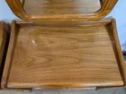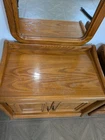 Approximately 75 inches tall from the bottom of the nightstand to the top. And 27 1/2 inches wide The product is a set of two vintage solid wood matching vanities with mirrors. These nightstands are designed in a retro style, measuring 75 inches in height, 17 inches in length, and 27 inches in width. Made from solid wood, they feature mirrored tabletops and solid wood handles, making them a unique and rare addition to any bedroom. The set of vanities adds a touch of elegance and vintage charm to the room while providing functional storage space.