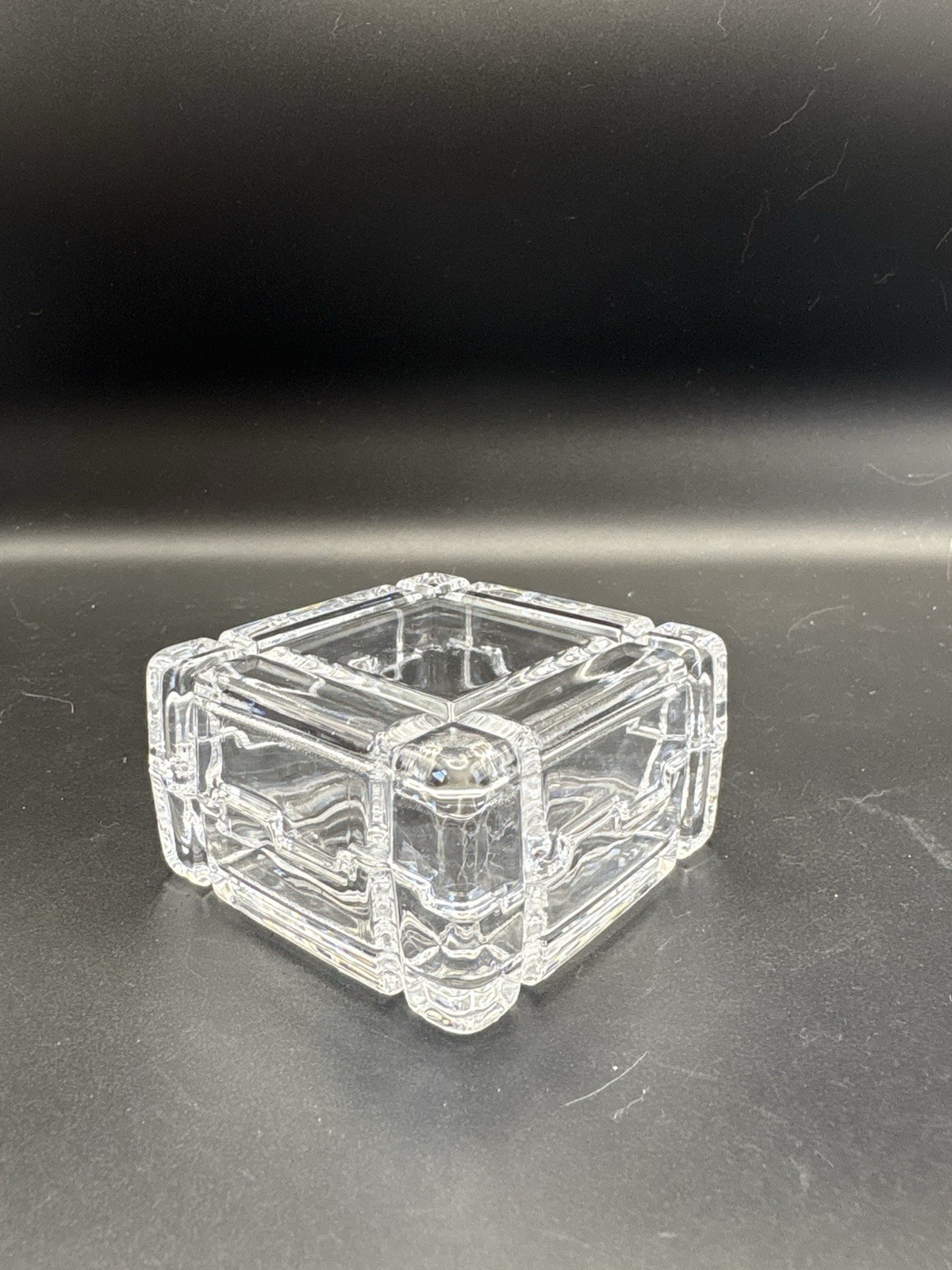 This Vintage Square Lidded Crystal Box Trinket Box is a small, clear crystal box suitable for storing small items. The puzzle design adds a unique touch to its vintage appeal, making it suitable for any room in the house. Care instructions recommend cleaning with a damp cloth, and the late 20th-century design adds a nostalgic touch. Perfect for adults looking for a decorative and functional piece. All items are sold as is. We do our best to photograph any imperfections and list marks, scratches, or any other damage in the description. If you have any questions regarding an items condition please feel free to send us a message.