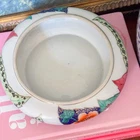 Fantastic rare Andrea by Sadek tobacco leaf round lidded jar/box. Such a unique shape! In great vintage condition. Colors are still vibrant and no chips or cracks. Approximately 7” in diameter. See photos for measurements. Please note items may appear slightly different in color based on lighting in your own home. I use natural light and a light box to photograph my items. Also, with vintage items, slight imperfections or normal wear with age is to be expected. I strive to disclose and show any flaws. Photos are by far the best representation of the item. Smoke free pet free home. Same to next business day shipper. Always packed with the utmost care. I do use recycled shipping boxes to be kinder to the planet. If that is an issue please don't hesitate to reach out.