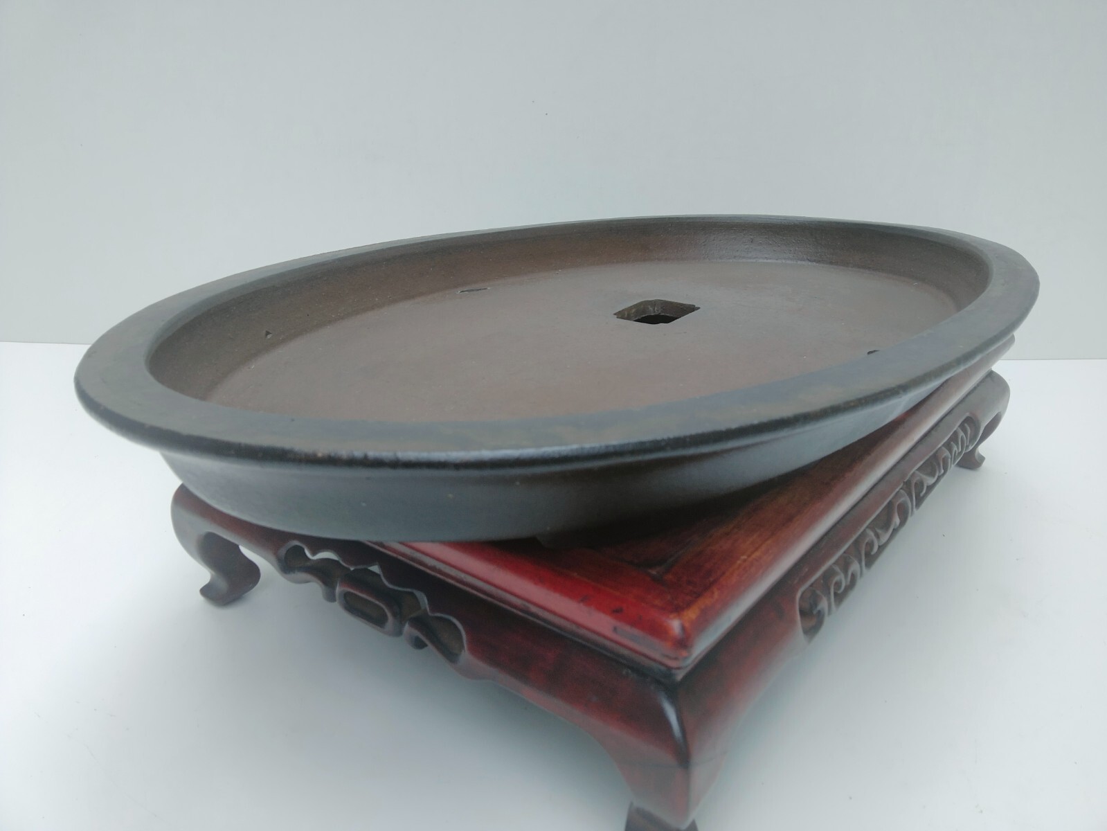 Old Vintage Tokoname Bonsai MARUHEI Oval Unglazed Extra Large Width 63 cm / 24.8 in. Description Shipping from JAPAN. Condition: Used Size (Approximate): Width: approximately 63 cm (about 24.8 inches) Depth: approximately 38.5 cm (about 15.2 inches) Height: approximately 5.5 cm (about 2.2 inches) ※The wood stand is not included. Only the pot is for sale. Returns We accept returns within 30 days of delivery, but please note that the customer is responsible for the cost of return shipping. Our return policy guarantees 100% satisfaction. If you receive an item that is significantly different from its description on our website, please contact us by email to request a refund. In such cases, you will need to return the item to us before we can process your refund. International Buyers - Please Note: Please note that import duties, taxes, and other charges are not included in the item price or shipping cost. These charges are the buyer's responsibility. We kindly advise you to check with your country's customs office to determine what these additional costs will be before placing a bid or making a purchase. Please be aware that such charges are typically collected by the delivering freight (shipping) company or when you pick up the item. Therefore, please do not mistake them for additional shipping charges. We comply with all applicable US and international laws and regulations regarding the declared value of merchandise. Please note that we cannot mark items as "gifts" or declare a lower value than their actual price. Such practices are prohibited by law, and we are committed to adhering to ethical and legal standards. If you cancel your order, we reserve the right to charge a cancellation fee. If there is an additional charge for shipping to your remote address, we will inform you and charge accordingly. We appreciate your understanding and cooperation, and we are happy to assist you with any questions or concerns you may have about international shipping and customs regulations. Thank you for your interest in our products and services.