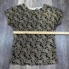 Vintage Women’s Trimmings Pleated Brocade Metallic Gold Blouse - Made in USA Women's Size - M Excellent Pre-Owned Condition NOTE: Please see all photos for condition as all flaws will be shown throughout the photos! * COLORS MAY BE DARKER OR LIGHTER OR SLIGHTLY DIFFERENT DUE TO MONITOR/PHONE/TABLET SETTINGS. Please refer to the "condition description" for inspection notes. Actual measurements may differ from the tag due to potential shrinkage, stretching, hemming, or manufacturer error. It is common for pre-owned jeans to shrink or stretch based on how they were washed/dried/worn from previous owners. If measurement differs more than 1.5" either way from what the tag says, I will list the items as actual measurements to ensure proper fit. I recommend measuring yourself before ordering online to help find the perfect fit for you. My shipping discount: $3 shipping on each additional item you add to your order!
