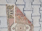 Handwoven 1x3 ft Vintage Turkish Rug with Cream & Pastel Star Medallion Design