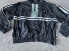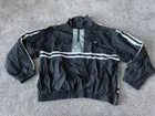 This vintage USA Olympics windbreaker jacket is a must-have for any sports enthusiast. Made of lightweight and water-resistant nylon material, this jacket is perfect for all seasons, especially summer, fall, and spring. The black and gray jacket features an embroidered logo and quarter zip closure, making it a stylish addition to any casual or workwear outfit. The jacket is perfect for gym and training, track and field, walking, cross training, CrossFit, running, and jogging. It has been well-maintained and is machine washable. This limited edition jacket is a vintage piece from the 90s and is a part of the JC Penney Olympics Windbreakers product line. Get your hands on this rare piece today!