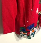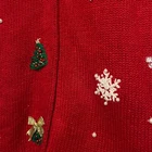 Ramie/Cotton Vintage 2002 Y2K Hidden front buttons Red with embroidered snowflakes, snowmen, Chriastmas trees Good vintage condition. Very faint area of discoloration on front. Hard to see unless you're looking for it. See last photo. Ugly Christmas sweater, grandma, vintage, ornate, unique, eye-catching, colorful , bows, cottagecore, embellished, Across the chest (armpit to armpit) 21 Length 26
