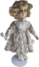 Included is the doll with outfit and stand. Has some wear, see all photos. Approximately 12” tall. Soft body, porcelain head.