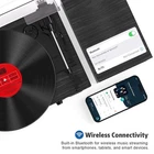 Turntable with Premium Sound & Modern Versatility Enhance your listening experience with this all-in-one turntable system that combines vintage charm with modern technology. Perfect for audiophiles and casual listeners alike, this turntable delivers rich, high-fidelity audio through its powerful built-in stereo speakers and enhanced external speakers (2 tweeters + 2 midwoofers) for crisp highs and deep, resonant lows. Key Features: ▁Multi-connectivity: Stream music wirelessly via Bluetooth 5.0, connect devices via AUX/USB/TF card, or enjoy classic vinyl. ▁USB recording: Digitize your vinyl collection effortlessly with one-touch USB recording (supports MP3 format). ▁Customizable sound: Short press 'EQ" to switch between different sound effects during audio playback. (Bluetooth/USB/TF mode only) ▁Extendable audio: Connect to external speakers or amplifiers via the RCA line-out for a complete home theater setup. ▁Retro style meets modern design: Sleek wood finish with intuitive controls-ideal for living rooms, studios, or gift-giving. 【4+2 Speakers & HiFi Sound】】The 4+2 speaker Hi-Fi system is a vintage record player that features built-in and external speakers, which combine to form a full-range stereo system. This system accurately reproduces the warmth of vinyl records by presenting transparent high frequencies and full-bodied low and medium frequencies. The external speakers can be connected to the turntable quickly and easily via the plug-and-play design, allowing for flexible placement to suit different acoustic environments. 【Digital USB Recording & LED Display 】Equipped with both a high-definition LED display and USB recording function. The LED screen provides real-time display of the playback status, ensures straightforward operation. This record player allows you to play digital music files (MP3/WAV) via a USB port, or record vinyl tracks as high-fidelity audio files to a USB drive. This enables effortless digitisation and sharing of classic records. 【Anti-Resonance Suspension Design】Featuring a belt-driven mechanism with a spring-suspended platter, minimises motor vibration and external noise for clear, distortion-free audio. The auto-stop function is a safety feature that stops the turntable at the end of a record, thereby protecting the stylus and vinyl from wear. 【Vintage Design, Modern Durability】 Handcrafted walnut finish and retro dials enhance your décor, while anti-resonance MDF construction ensures skip-free playback during lively gatherings. 【Bluetooth & Three Speed】 Spin 7", 10", and 12" records at 33/45/78 RPM. Equipped with a built-in Bluetooth receiver, enabling wireless streaming of music and podcasts from your smartphone. The 3-speed selection (33/45/78 RPM) precisely matches 7", 10" and 12" vinyl records for authentic playback. 【Plug-&-Play for All Vinyl Lovers】Wth its Bluetooth-to-Vinyl transitions, and for archiving collections without a laptop. It also allows for upgrading the sound later with RCA outputs. This product is perfect for dorm rooms, lofts, or one's den.