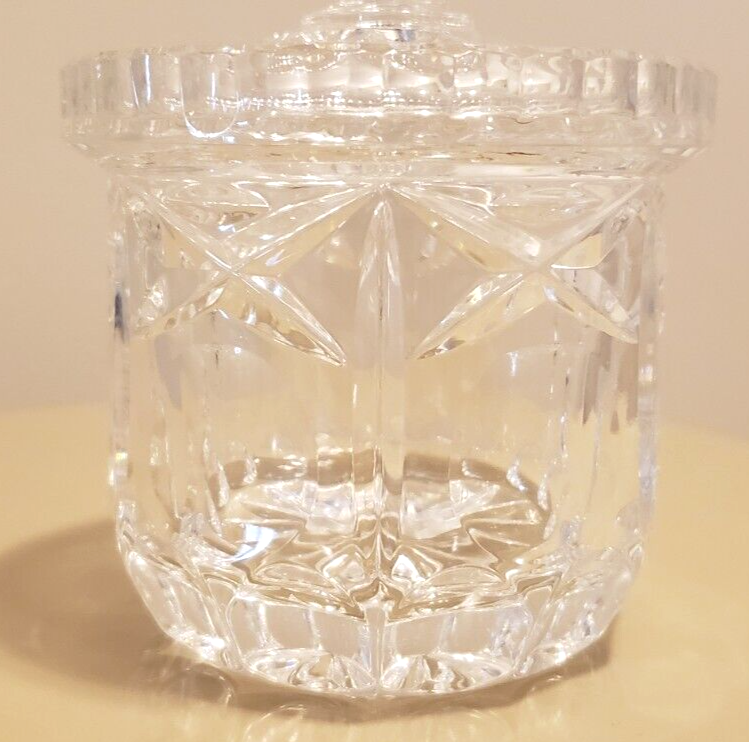 Vintage Waterford Crystal Jam Server w/ Lid 4.5 Tall, 3.5 Width, 11" Circumference & 3" Depth. Condition: Very good used condition No chips, cracks or damage.