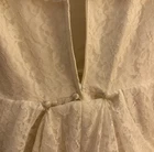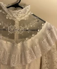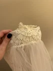 Beautiful vintage wedding gown and veil. Excellent condition! The hem of the lining is a little dirty as shown in photos. there is a very small black mark on the back near the zipper. Will be shipped in a box with care! There is no brand or tags on this dress. It is probably close to a size 0. See measurements below and reach out with any questions before purchase! Shoulder to shoulder: 14.5” Waist: 12” Neckline to hem: 56” Waist to hem: 41” Waist to hem of train (train length): 67.5” Veil length: 48.5” Arm length: 23”
