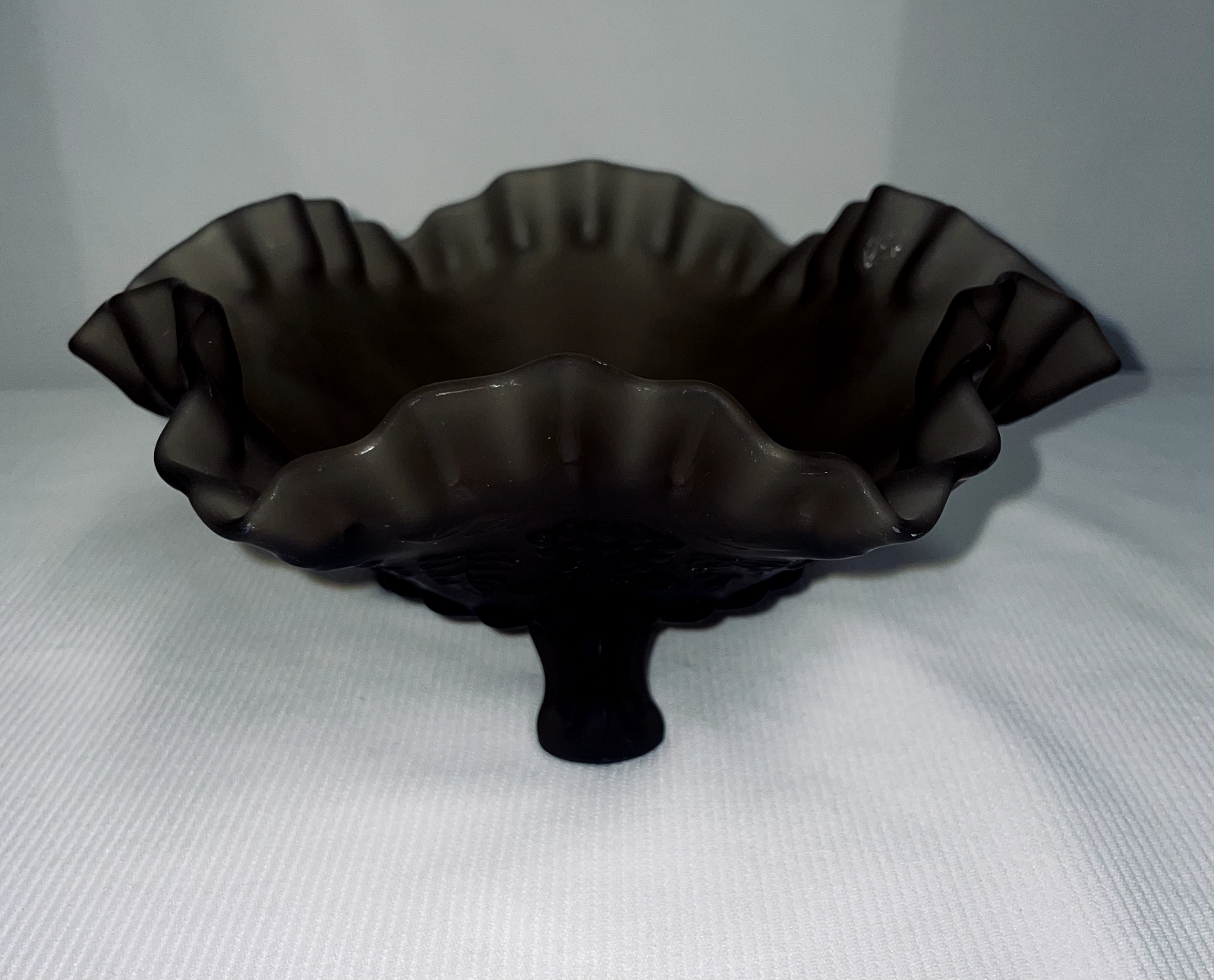 Westmoreland Satin Glass Footed Smoke Brown Footed Ruffled Edge Bowl 3 4/8 Inches High Pre-owned, no chips or cracks. There are slight signs of use but very slight. The ruffled edge rim is in very good condition. Measurements are 3 4/8 inches high x 7 inches wide edge to edge at widest area. 9 inches deep. Hand wash only. ATTENTION REGARDING SHIPPING !! Shipping costs are expensive. Here is an offer that is hard to refuse. If you buy 2 or more items totaling $50 or more , I will handle the shipping cost (ground) anywhere in the continental United States. The items cannot be listed as having to be shipped alone due to SPECIAL PACKING NEEDS . eBay does not adjust the shipping cost removal from the invoice automatically. I can do it on the final invoice after you have the items in your shopping basket, before you pay. If eBay forces payment before that is done, you will receive a refund of shipping cost made before your package is shipped within the first business day following the transaction. The free shipping offer does not apply to Priority or Expedited shipping, although we can discuss a fair reduction in shipping cost should you desire the shipping upgrade.