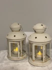 This White Colonial Lantern Candle Light Pair from the brand Colonial Candle is a charming addition to any room. The octagonal shape, distressed finish, and rustic pattern give it a historic and vintage look. Can use real wax or LED candle, these medium-sized candle holders are suitable for windows, walls, and furniture. In or outside entertainment. The white color and country style make them versatile for all occasions, while the easy-care instructions ensure low maintenance. Hinged open for easy care of candle. Perfect for adding a touch of ambiance to any space, these lanterns are sure to enhance the decor of your home. Returns accepted within 30 days; buyer pays return shipping