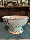 Vintage White Enamelware Colander Strainer Vegetable Decor 8 3/4" in diameter at top No handles, but still displays nicely.