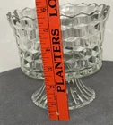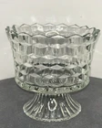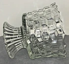 This is a vintage Whitehall Clear Colony compote bowl with a stacked cubic design with a round shape and has an elegant vintage style. Made of glass in the 1950s in America, it features a pedestal base and flared rim. This beautiful and elegant piece measures 5.75" inches tall, 6" inches wide at the top rim and 4" inches wide at the base. This piece can be used as a small fruit bowl, a small truffle bowl or at the entryway as a catchall. This piece is sure to impress all your guest with its vintage beauty and design. Vintage Whitehall Clear by Colony Stacked Cubic Design Pedestal Flared Compote is in excellent vintage pre-owned condition, with NO chips, cracks or repairs. Please review all pictures for proper assessment of its excellent vintage pre-owned condition.