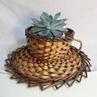 Vintage Wicker Rattan Teacup Basket Planter Cup and Saucer Boho Planter